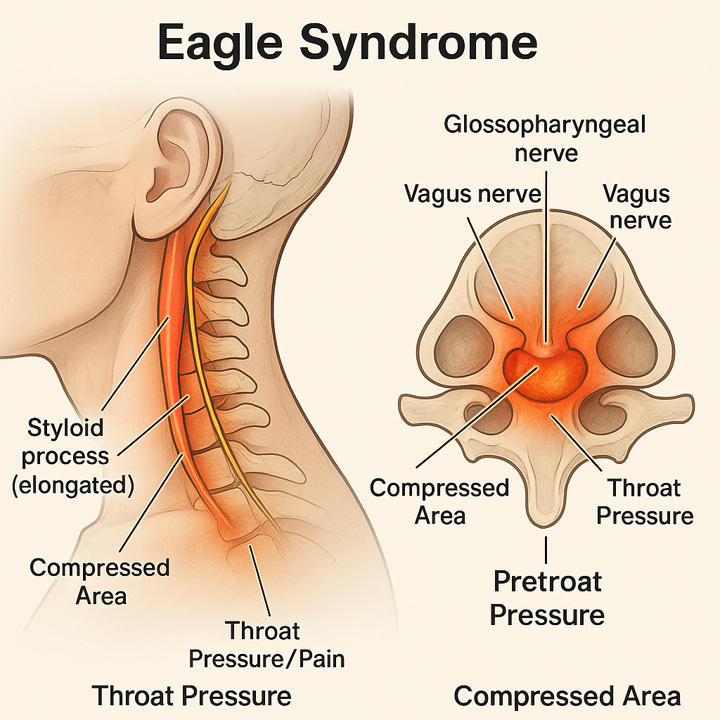 With Eagle Syndrome, the real problem isn’t random dizziness, palpitations, or throat tightness, it’s the elongated styloid bone pressing into the vagus and glossopharyngeal nerves.